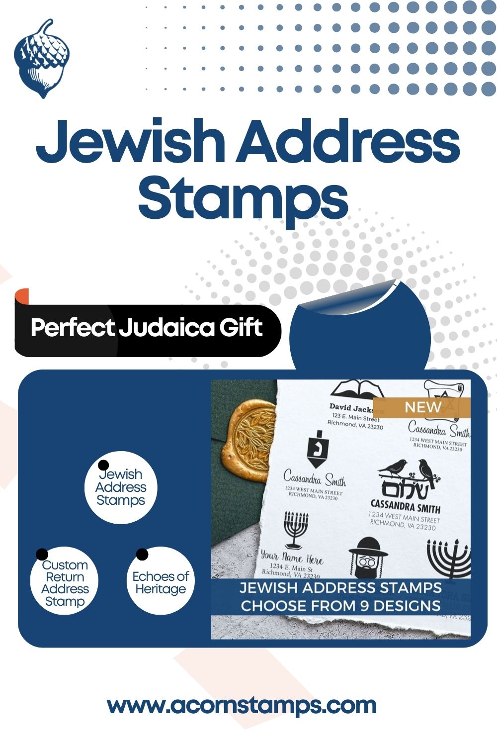 Jewish Address Stamps pin