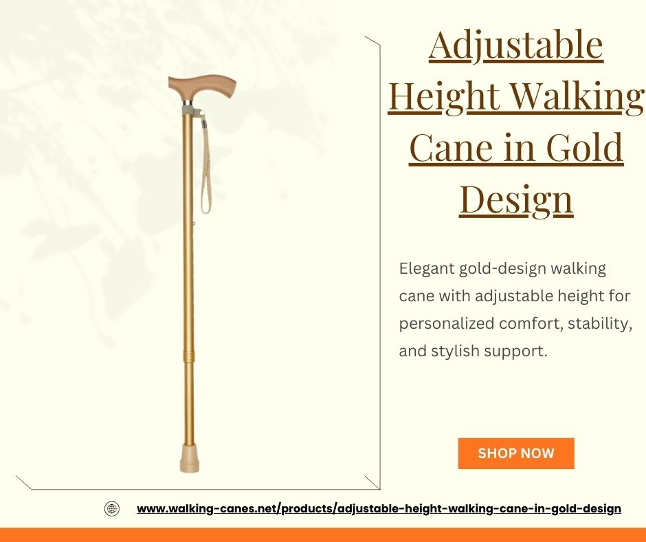 Adjustable Height Walking Cane in Gold Design