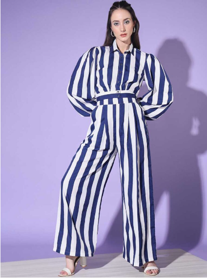 Blue and White Crepe Cord Set Mangalamdesigner.com
