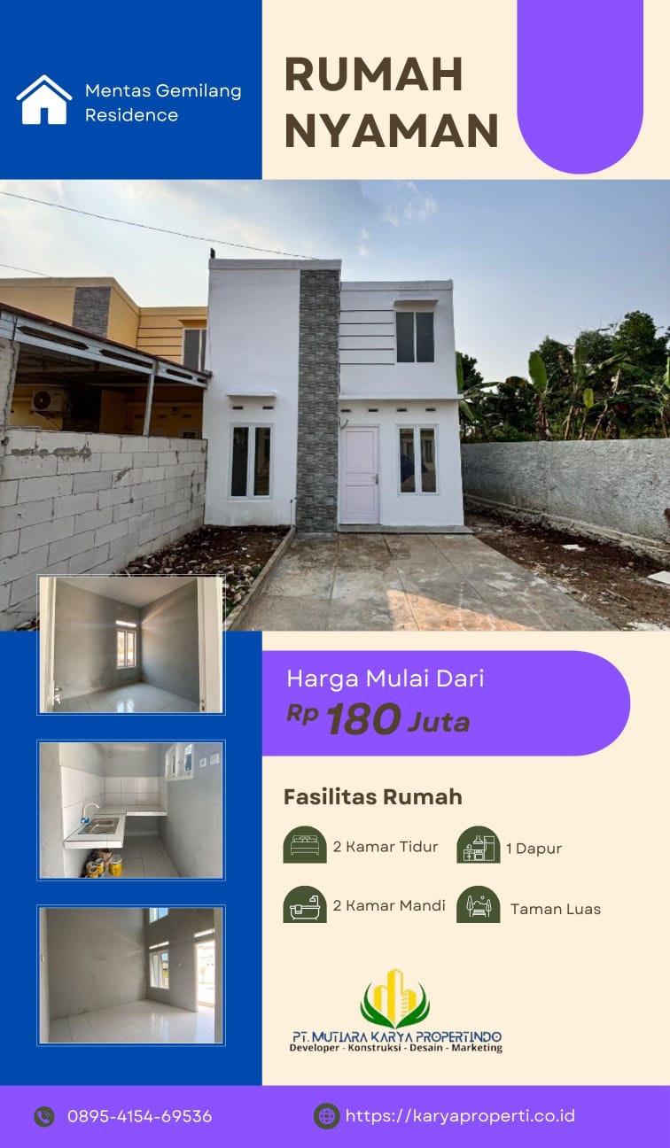 Rumah murah Rp 155 Juta MENTAS GEMILANG RESIDENCEAkad : - Tanpa Bi check - Tanpa Batas Usia- Tanpa Bunga : Dicari yang serius!