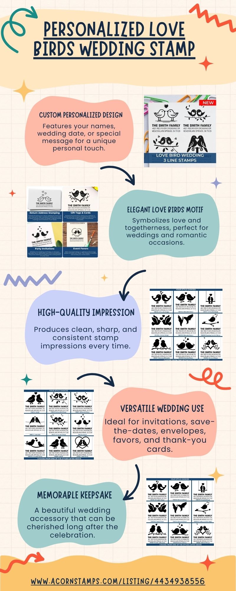 Personalized Love Birds Wedding Stamp